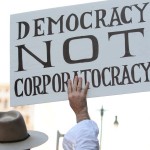 “Democracy, Not Corporatocracy”: It’s all about the people with the Occupy Wall Street movement, and the people don’t feel like their vote matters anymore when corporations have the money to lobby politicians. The frustration is that corporate personhood has given the big boys more of a vote than the average American.