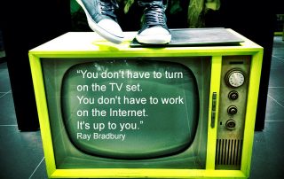"You don't have to turn on the TV set. You don't have to work on the Internet. It's up to you." Ray Bradbury Get more quotes like this by following us on the social networks below. Facebook | Twitter | Instagram | Tumblr | Pinterest | Google+ Photo Credit: Esther Vargas via Flickr
